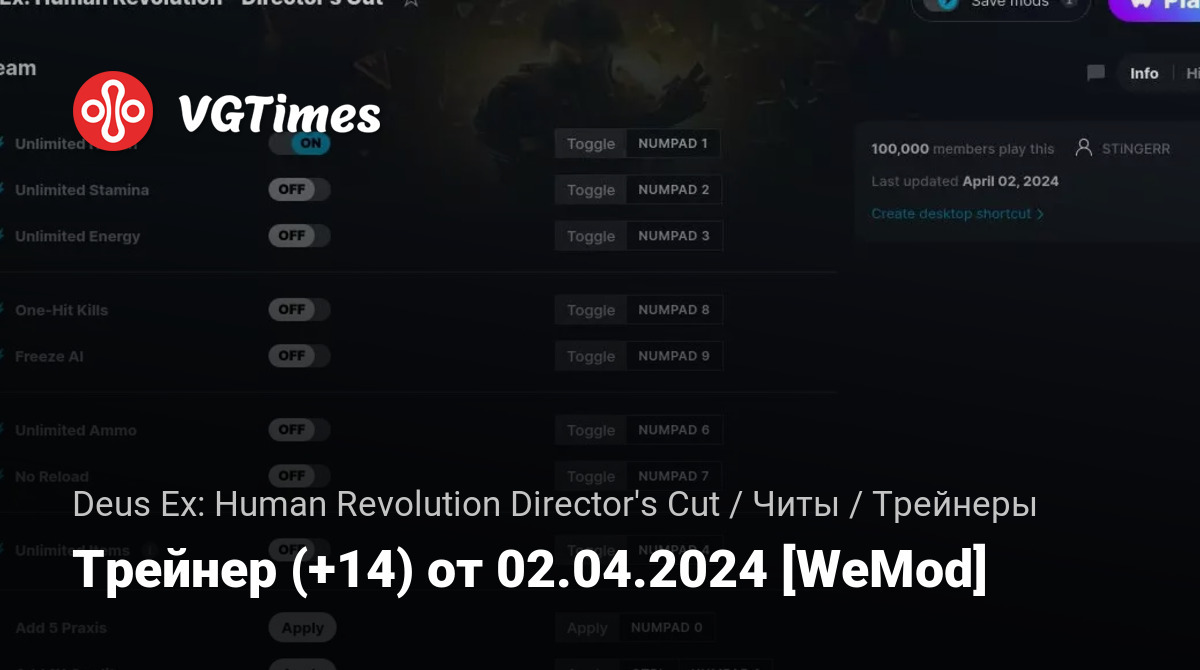 • Deus Ex: Human Revolution Director's Cut — Трейнер (+14) от 02.04.2024 [WeMod]