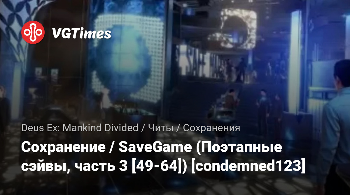 Третья часть поэтапных сохранений для Deus Ex Mankind Divided.
