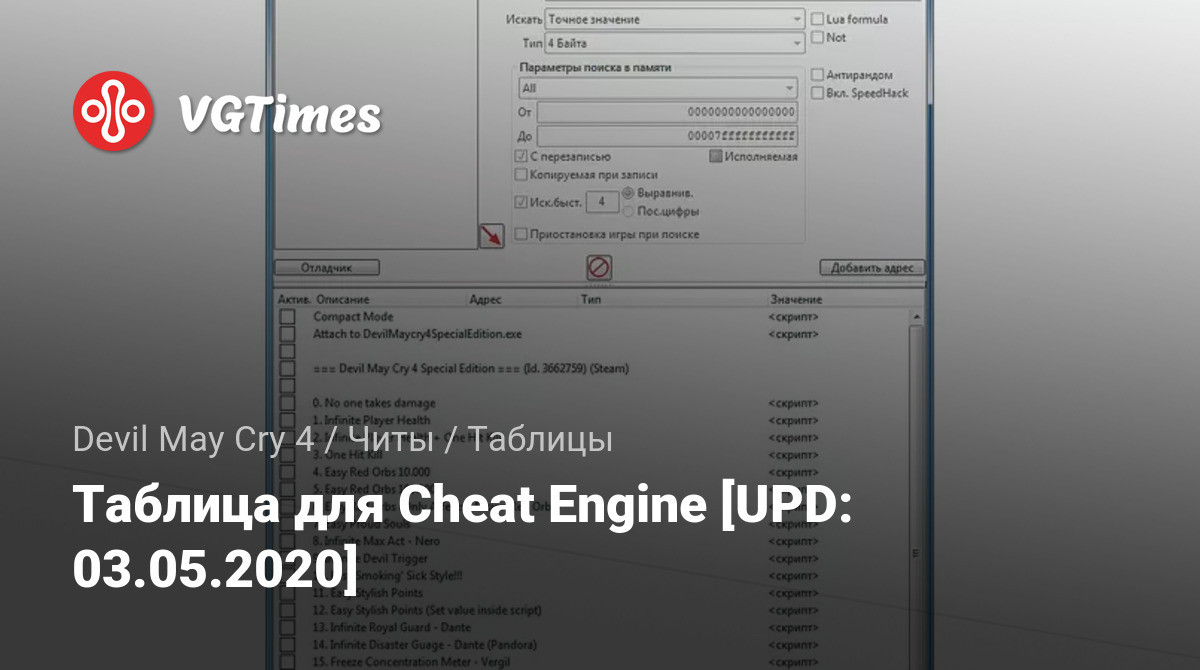 Таблица для Cheat Engine [UPD: 03.05.2020]
