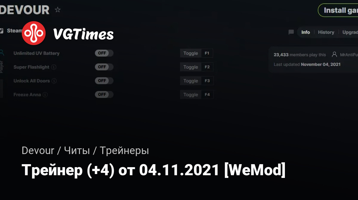 Для использования трейнера необходима установка системы WeMod (требуется онлайн подключение).