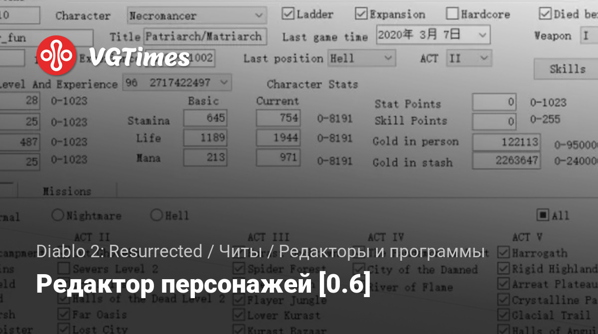 Программа для редактирования характеристик персонажа. Позволяет изменять различные параметры персонажа и редактировать инвентарь.