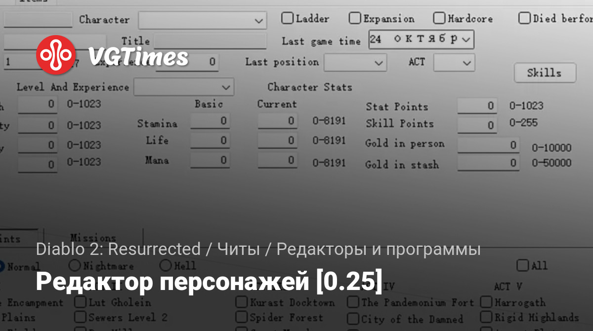 Программа для редактирования характеристик персонажа. Позволяет изменять различные параметры персонажа и редактировать инвентарь.