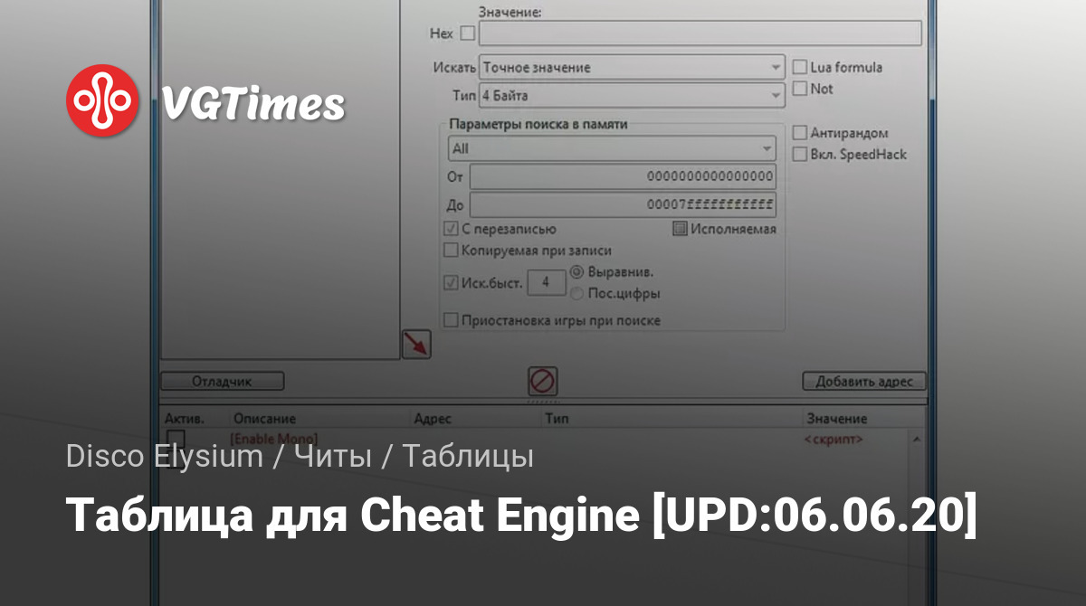 1. Запустить Cheat Engine, "Load" и выбрать таблицу