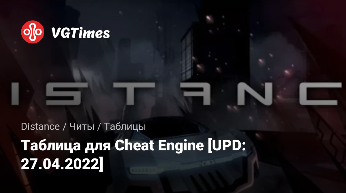 • Distance — Таблица для Cheat Engine [UPD: 27.04.2022]