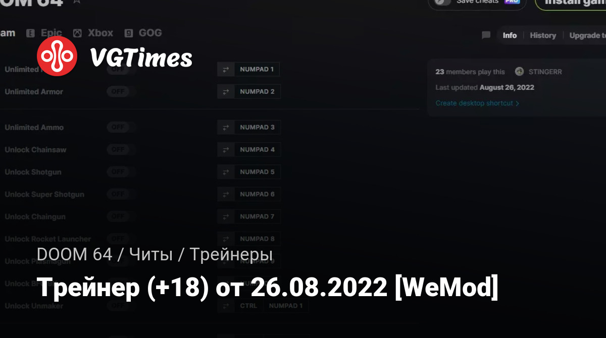 Для использования трейнера необходима установка системы WeMod (требуется онлайн подключение).
