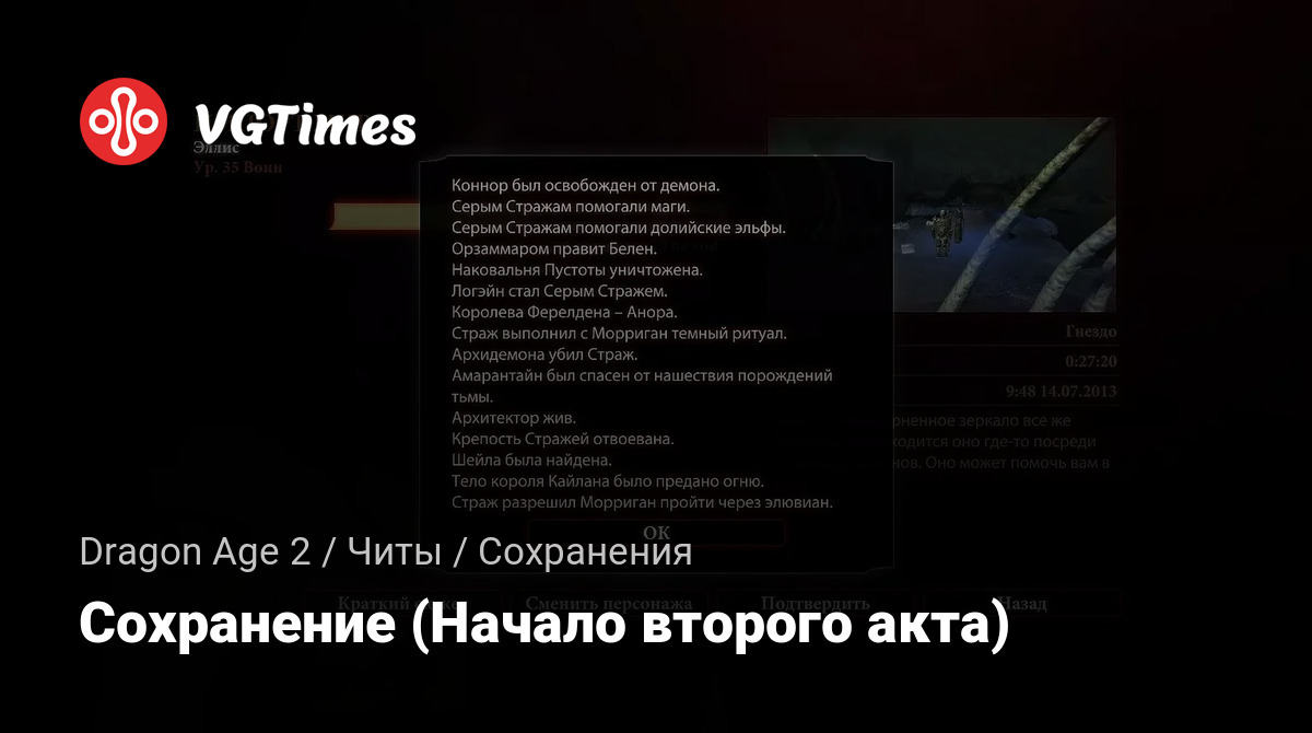 Сейв является продолжением моего сейва из DAO, там герой Ферелдена был добряком и всем помогал, зачал ребенка. Морриган а после женился на Аноре.