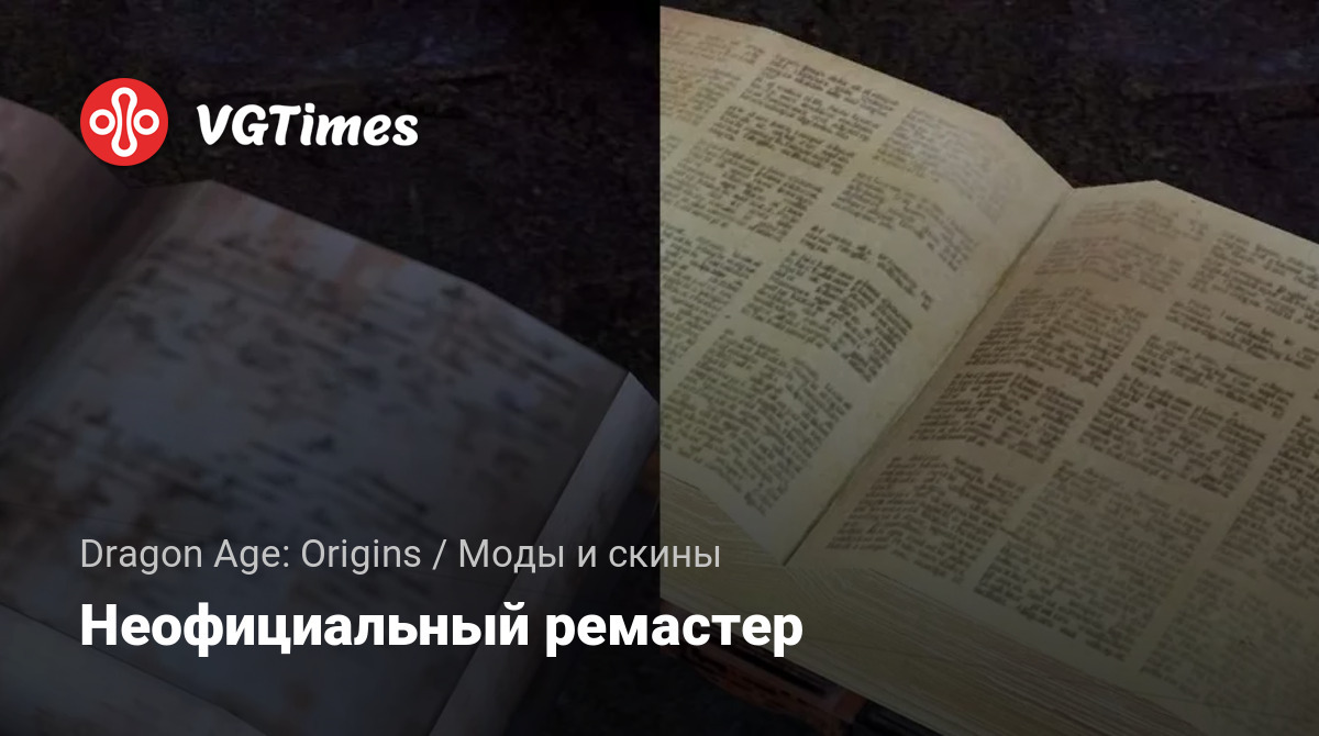 Извлеките папку Unofficial Remaster из загруженного ZIP-файла и поместите ее в папку Documents/BioWare/Dragon Age/packages/core/override. Если у вас еще нет папки переопределения, создайте ее.