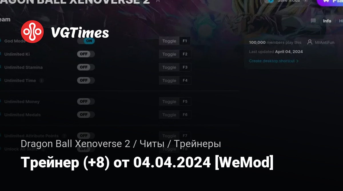 • Dragon Ball Xenoverse 2 — Трейнер (+8) от 04.04.2024 [WeMod]