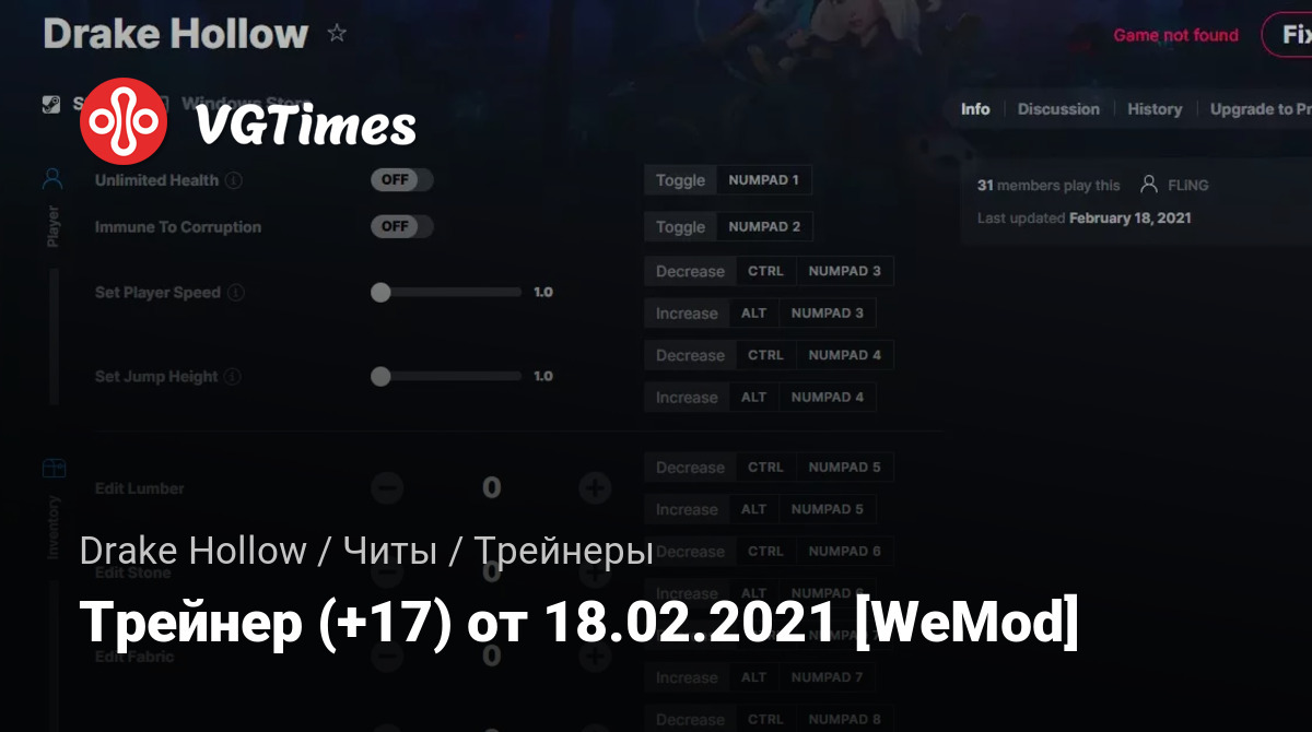 Для использования трейнера необходима установка системы WeMod (требуется онлайн подключение).