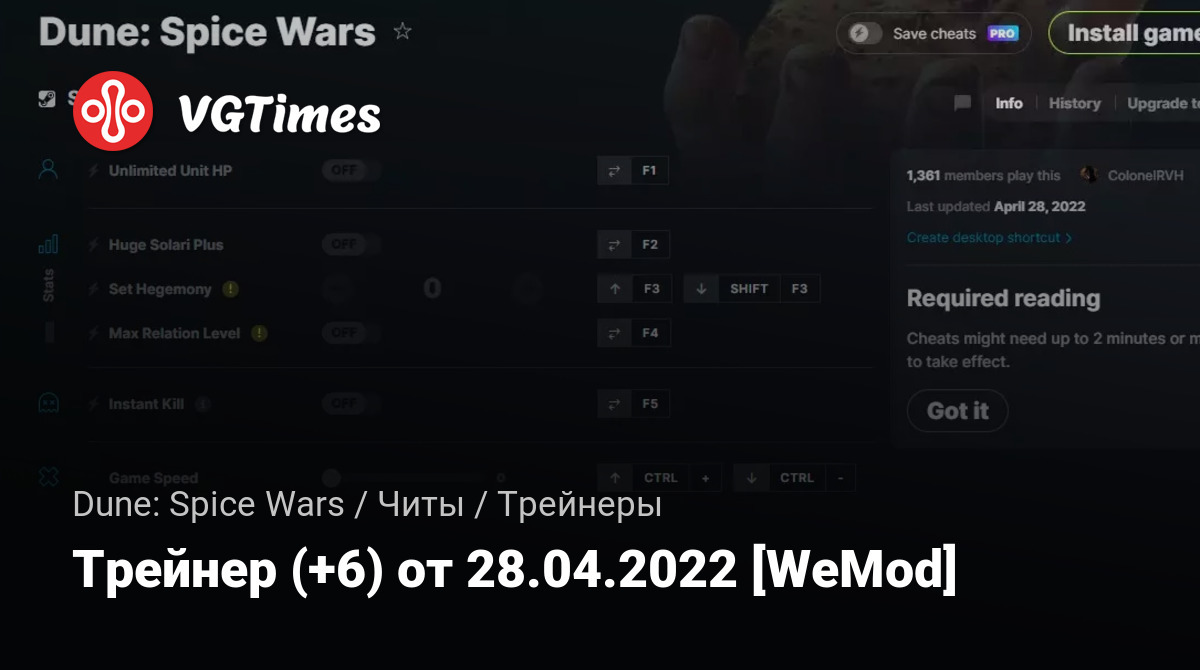 Трейнер (+6) от 28.04.2022 [WeMod]