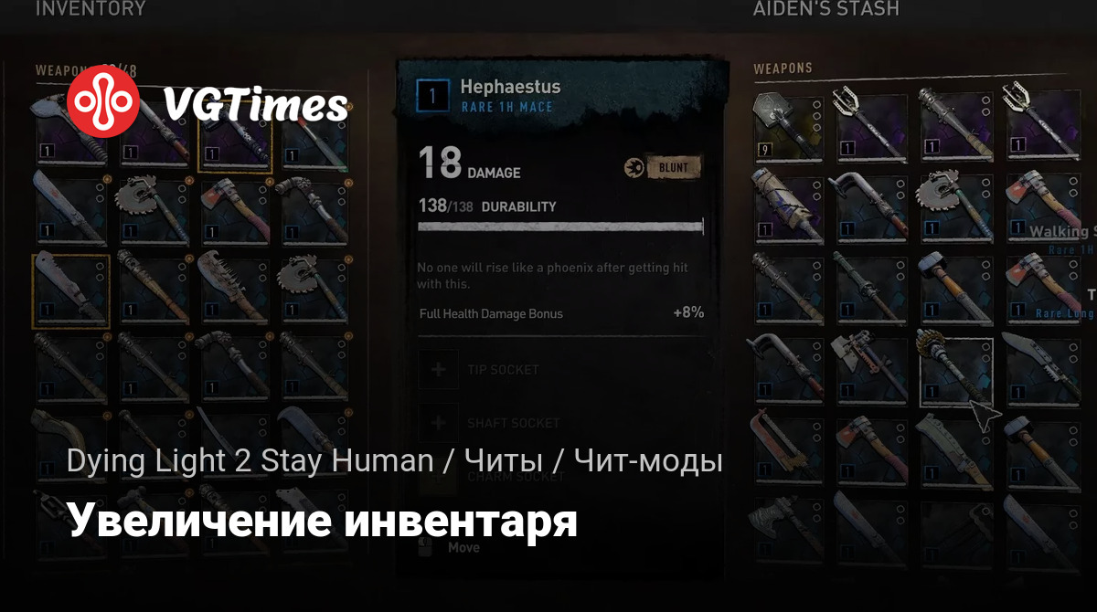 Модификация увеличивает количество ячеек инвентаря и тайника игрока.