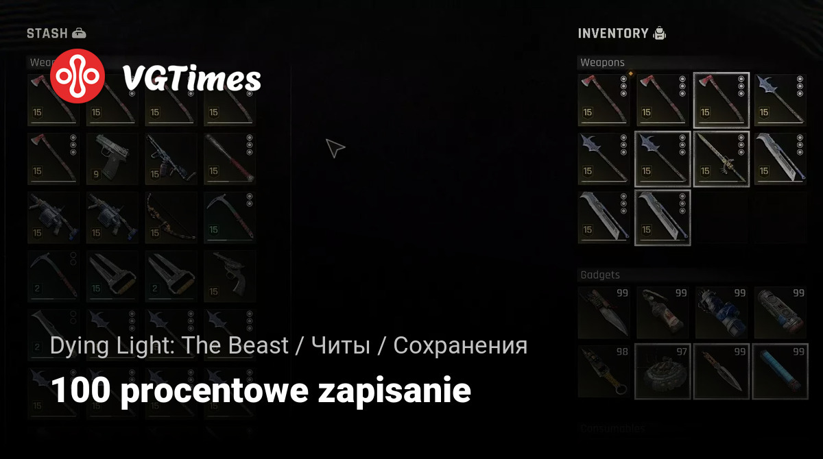 Zapis zawiera najlepszy ekwipunek oraz kilka fajnych broni do walki wręcz, maksymalną ilość zasobów i mnóstwo przewodników. W zestawie 100 kooperacyjnych skrzynek i powinno być całkiem sporo lamp UV.