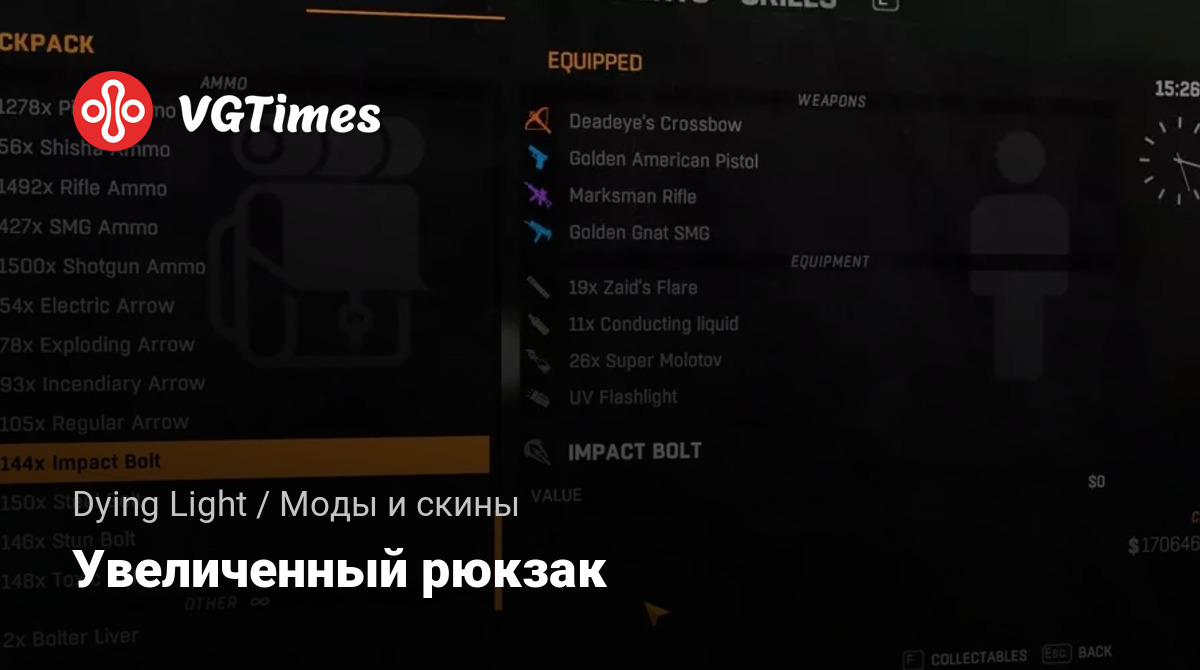 Этот мод увеличивает ваш рюкзак до 30 слотов и увеличивает лимит боеприпасов для всех типов оружия до 1500.