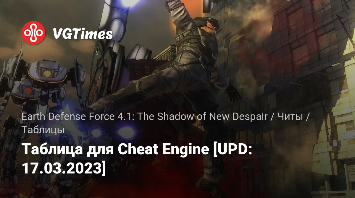 Gry Earth Defense Force 4.1: The Shadow of New Despair Pliki Tabele Таблица для Cheat Engine [UPD: 17.03.2023]
