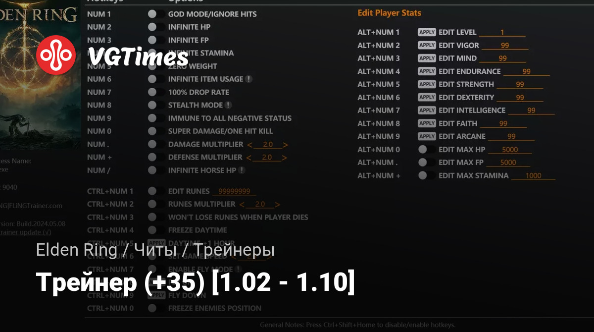 • Elden Ring — Трейнер (+35) [1.02 - 1.10]