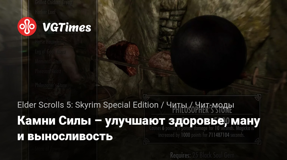 Gry Elder Scrolls 5: Skyrim Special Edition Pliki Cheat-mody Камни Силы – улучшают здоровье, ману и выносливость
