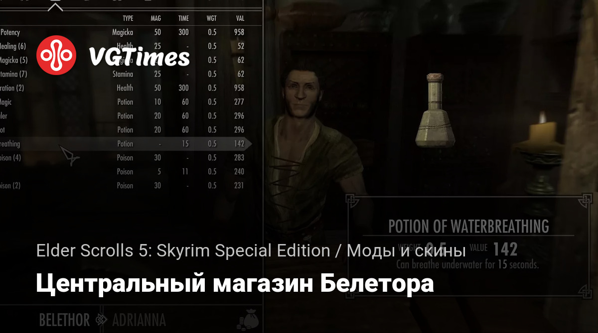 Этот мод значительно расширяет товарный ассортимент в лавке Белетора. Теперь, это действительно большой магазин в центре Скайрима!