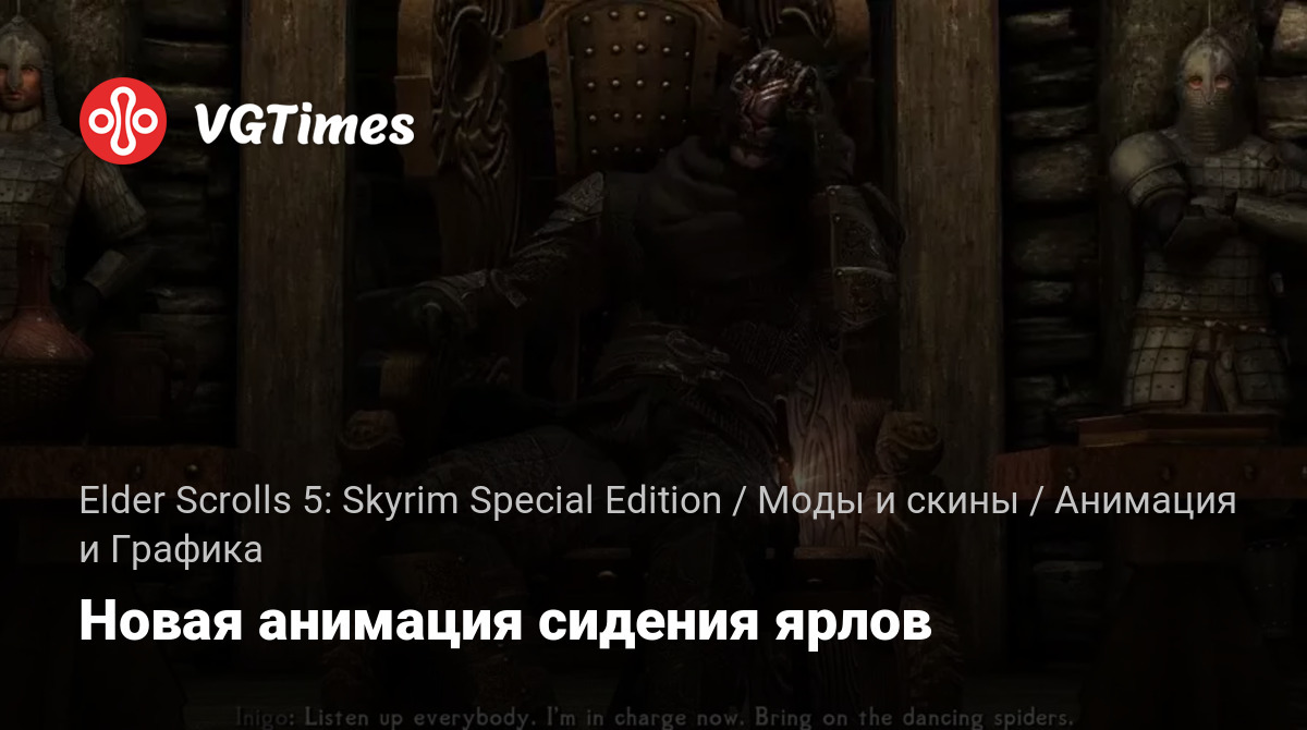 Этот мод заменяет анимацию позы, в которой сидят ярлы на своих тронах. В комплекте поставляются анимации: только для ярлов женского пола, для всех ярлов и только для главного героя. Анимация сидения, теперь, будет похожа на ту, в которой сидел ярл Виртур во время квеста «стражи рассвета». Также, в комплекте идет три разных позы, устанавливайте одну.
