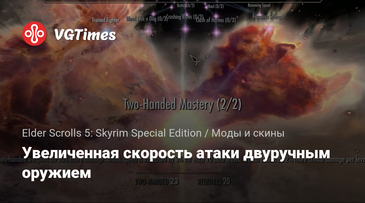 Этот мод увеличивает скорость атаки двуручным оружием в зависимости от вашего уровня навыка.