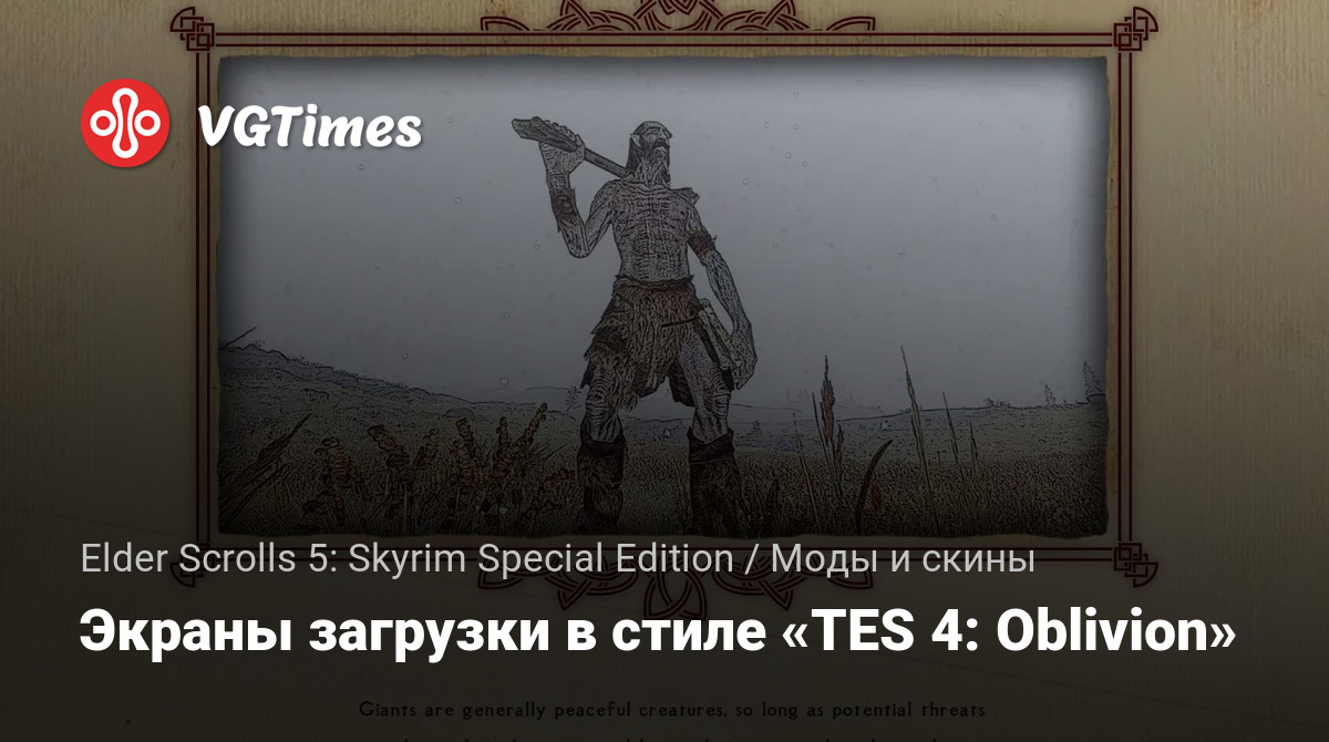 Этот мод заменяет стандартные экраны загрузки и делает их в стиле предыдущей игры серии Elder Scrolls — Oblivion. Есть два варианта — бумага и камень. Всего добавится 94 новых экрана загрузки.
