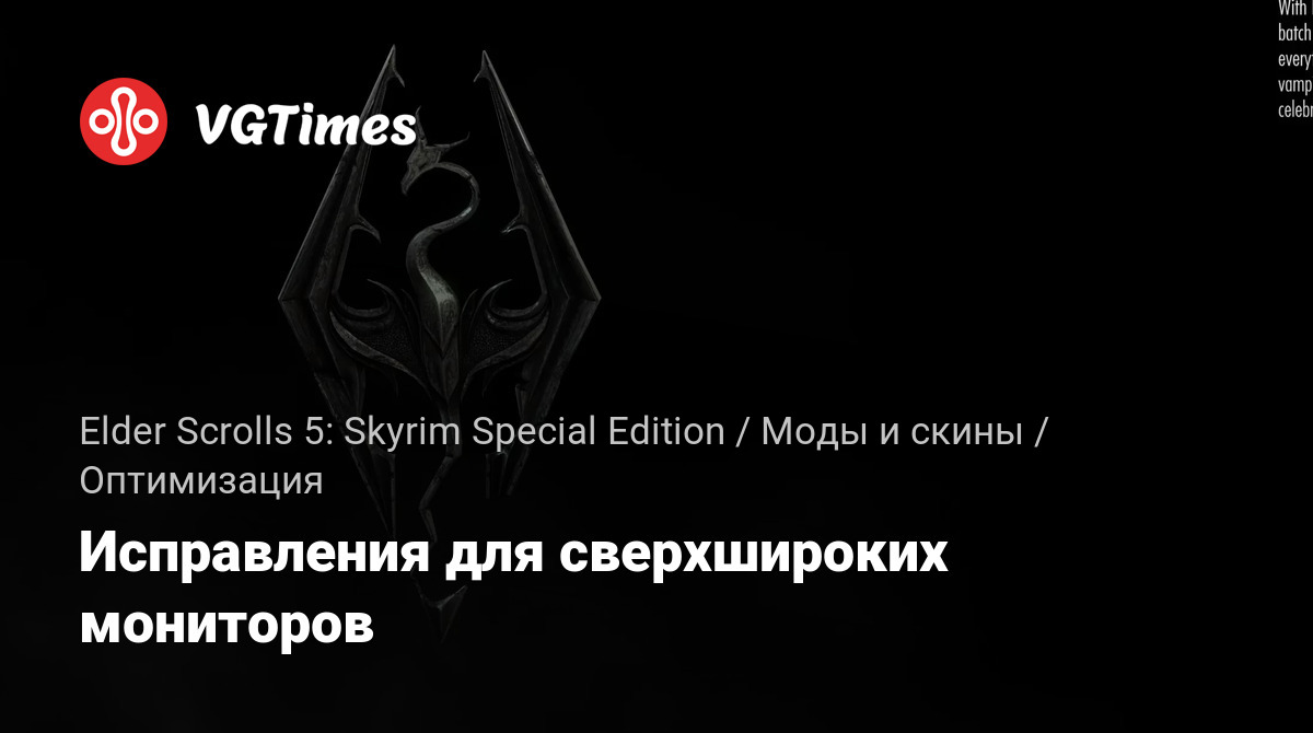 Gry Elder Scrolls 5: Skyrim Special Edition Pliki Optymalizacja Исправления для сверхшироких мониторов