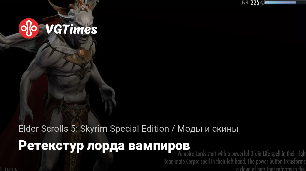 Это небольшой заменитель текстуры лорда вампира, который сделает его более бледным и бескровным, чтобы соответствовать большему реализму. Для установки распакуйте архив в папку data.