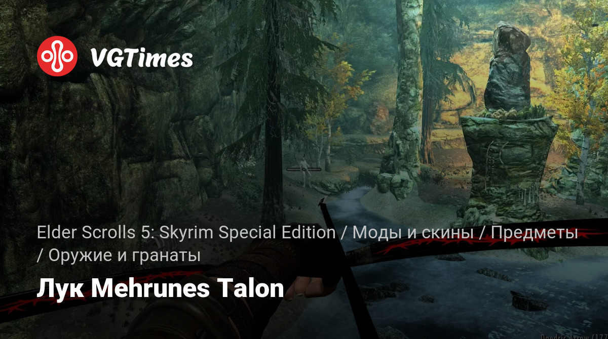 Этот мод добавляет в игру один новый лук под названием Mehrunes Talon. Он расположен в правом яме для костра внутри святилища Мерунеса. Урон немного лучше, чем даэдрический. Легче и быстрее. Можно создать, зачаровывать и улучшать с помощью перка даэдрическая кузница.