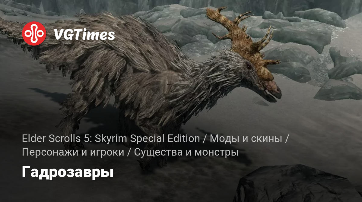 Давным-давно, в Эру Рассвета, раньше были большие рептилии, которые бродили по Нирну до того, как появились гуманоидные расы, и когда Аэдра и Магна Ге были еще более распространены в Мундусе. Сегодня они все еще существуют, и палеонтологи Тамриэля называют их динозаврами. Один из этих динозавров известен как гадрозавр или динозавр с утиным клювом. Они произошли от своих предков и развили перья, которые покрывают большую часть их тела и действуют как мех, чтобы согреться в климате Скайрима. Есть 7 видов гадрозавров, которые бродят по провидению Скайрима, и 1, обитающий в Солстхейме.