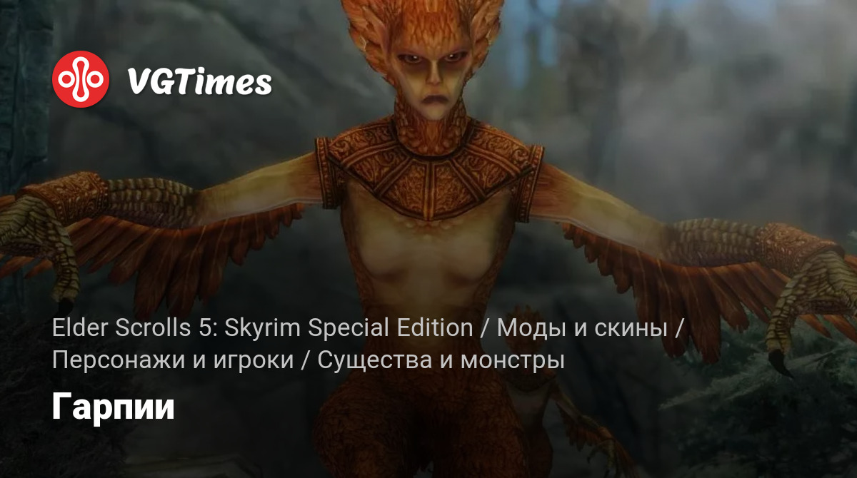 Гарпии — свирепые маленькие пернатые существа, напоминающие гибрид птицы и человека. Эти существа имеют широкое географическое распространение в Тамриэле, отчаянно защищая свои гнезда острыми когтями и магией ветра в опасных матриархальных стаях.