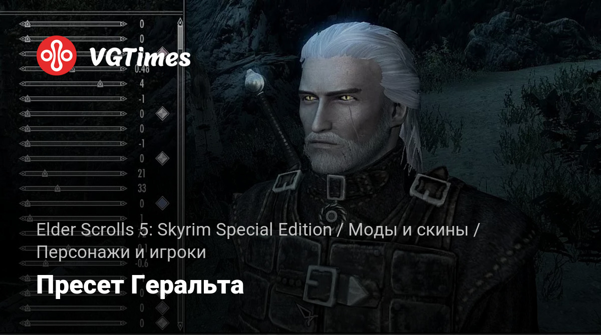 Оригинальное название: The Witcher 3 Geralt HIgh poly Head Racemenu Preset.