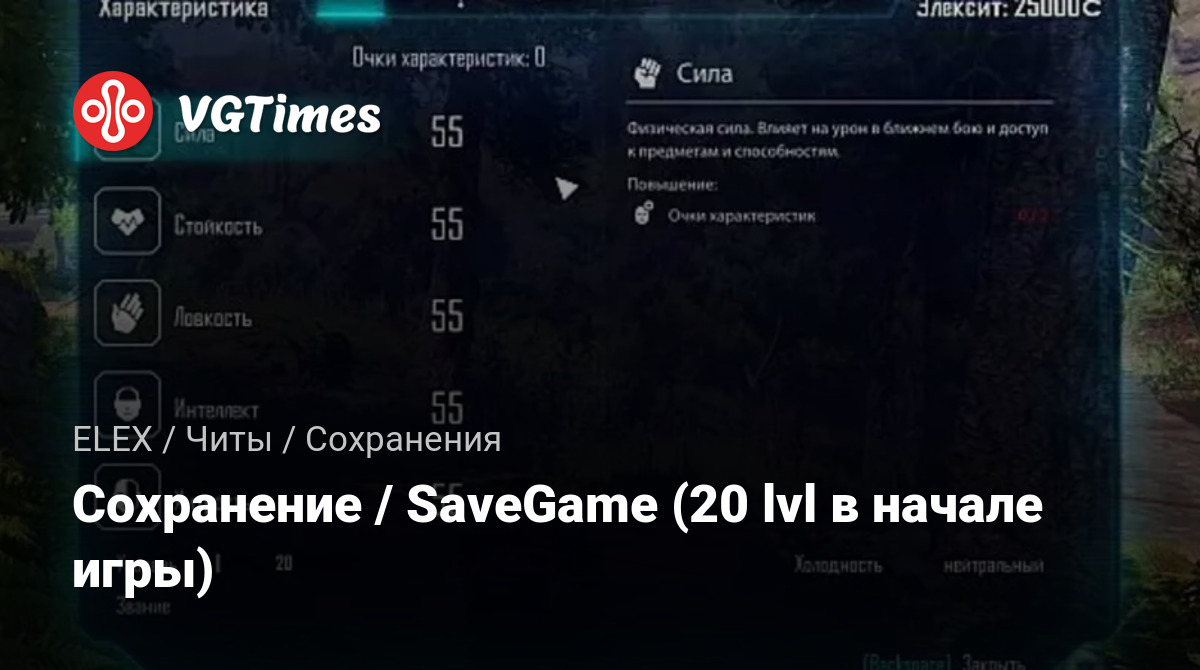 Сохранение для тех кому лень качатся в начале игры! В начале 20 lvl и хорошее оружее с 25000 элексита.