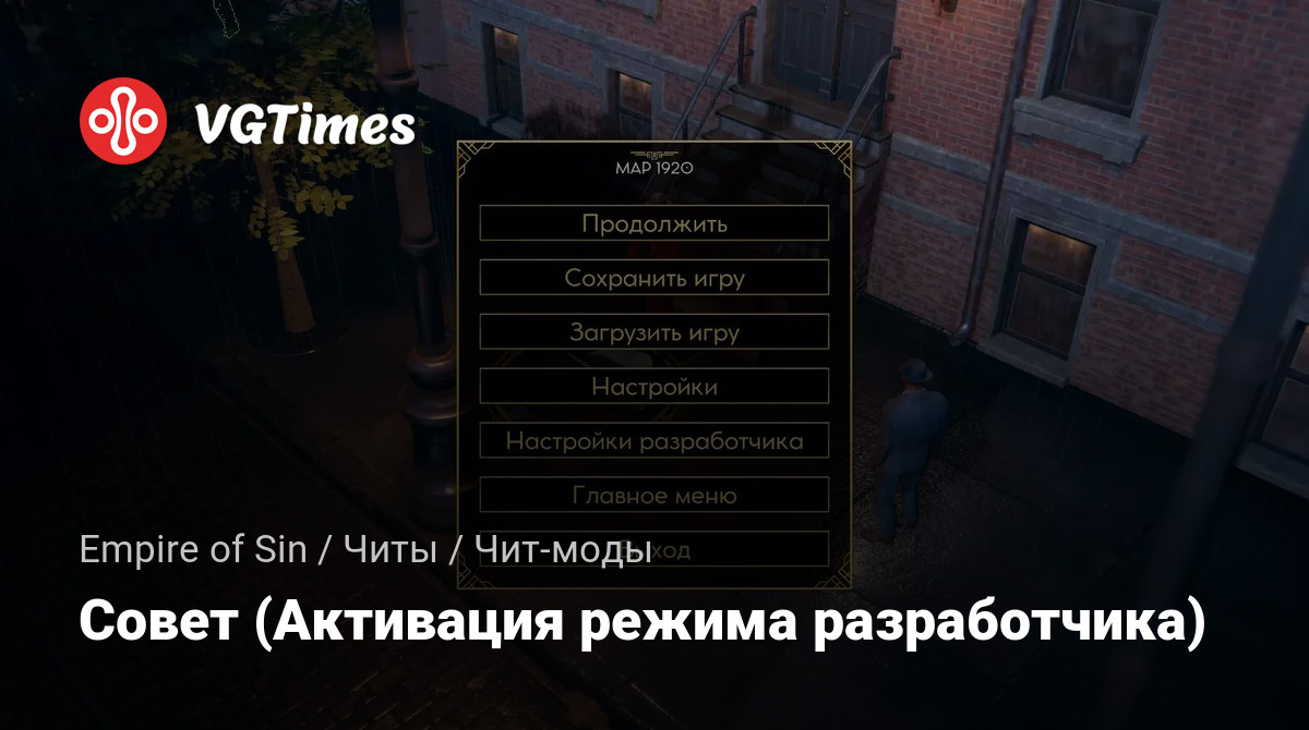 Скопировать файл DefaultPlatformSettings_PC.json по пути Empire of SinEmpireOfSin_DataStreamingAssetsSettings либо открыть этот файл у себя по этому же пути и заменить ""developerMode" : false" на ""developerMode" : true"