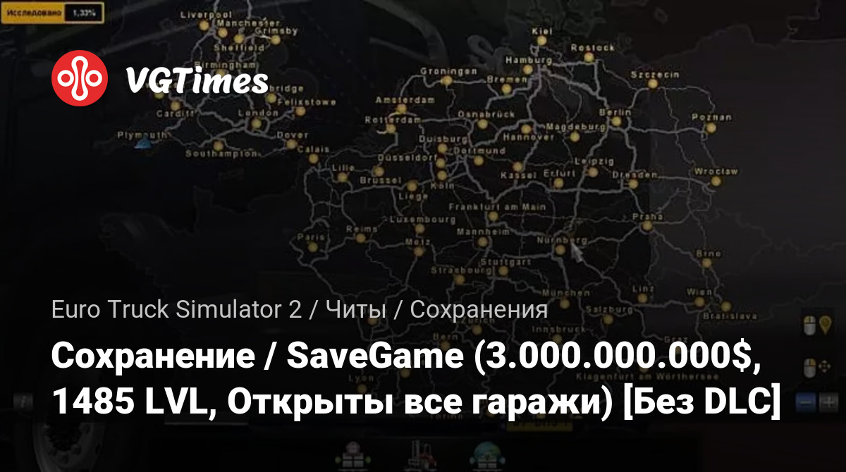 Gry Euro Truck Simulator 2 Pliki Zapisane Сохранение / SaveGame (3.000.000.000$, 1485 LVL, Открыты все гаражи) [Без DLC]