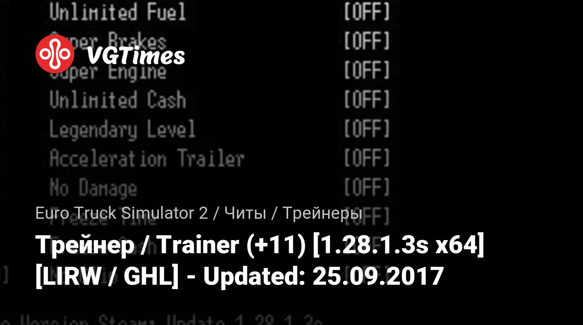 Gry Euro Truck Simulator 2 Pliki Trenery Трейнер / Trainer (+11) [1.28.1.3s x64] [LIRW / GHL] - Updated: 25.09.2017