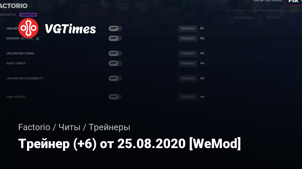 • Factorio — Трейнер (+6) от 25.08.2020 [WeMod]