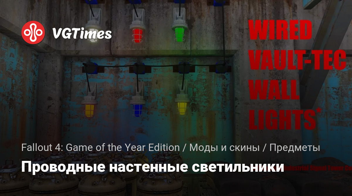 Этот мод добавляет проводные версии настенных светильников Vault-Tec (промышленные сигнальные лампы). Версия 1.1 добавляет больше цветов, поэтому теперь доступен полный набор стандартных цветов. Используйте их для сигнализации на ваших заводах / базах / поселениях.