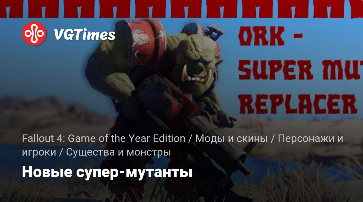 Этот мод заменяет супермутантов, бегемотов и гончих-мутантов и их оружие на орков и сквигов из вселенной Warhammer 40,000. Изменяет большинство доспехов Супермутантов, чтобы они соответствовали им.