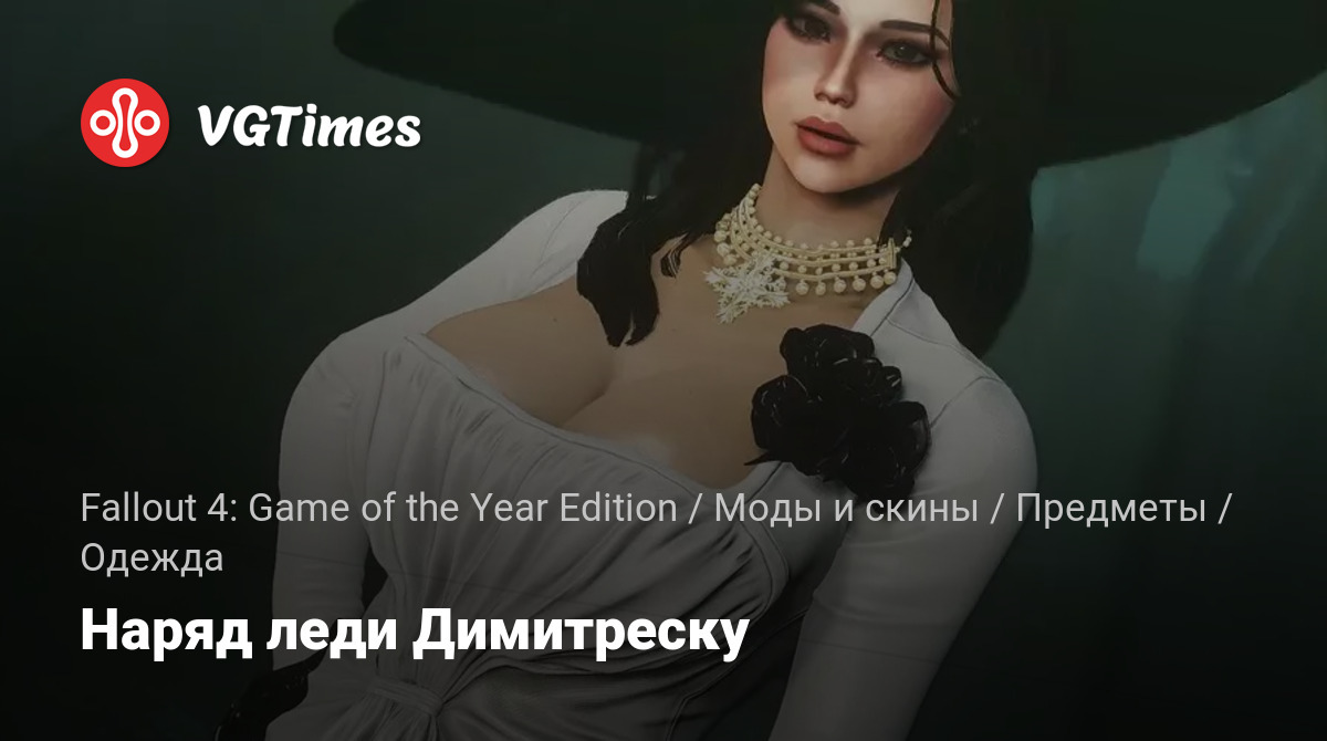 Основной файл поставляется с готовыми сетками, которые максимально приближены к леди Димитреску, каждый снимок экрана сделан с их использованием. Платье использует стандартную физику Fallout 4. Можно создать на химической станции.