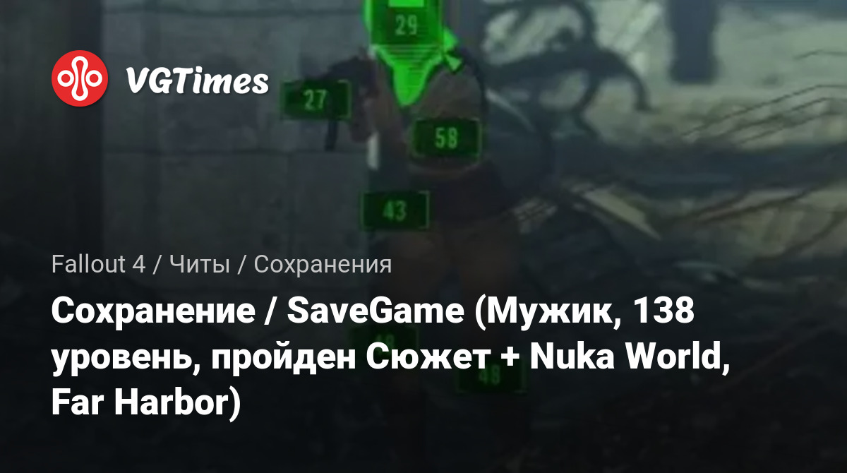 Сохранение / SaveGame (Мужик, 138 уровень, пройден Сюжет + Nuka World, Far Harbor)