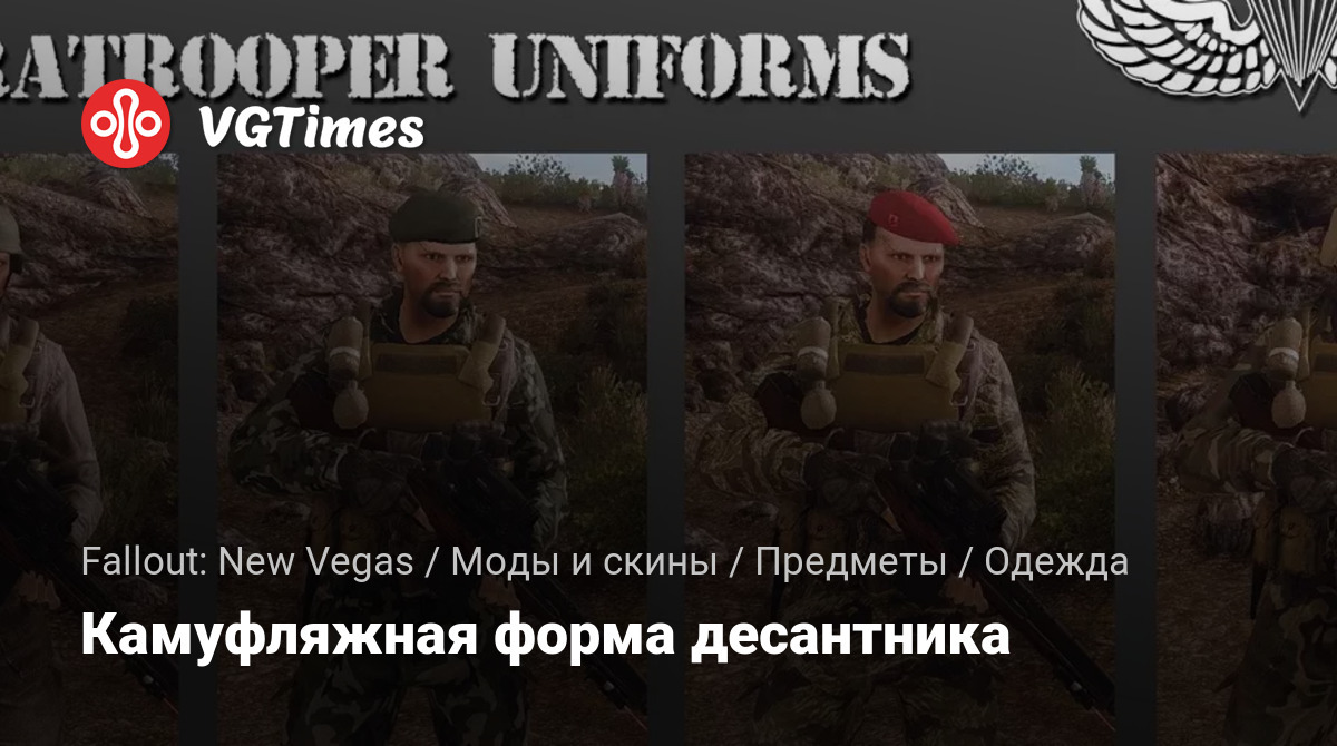 Этот мод добавляет несколько камуфляжных форм в стиле десантников. Всего 20 различных нарядов (из 20 различных стран), а также головные уборы. Найти все это можно в рюкзаке позади грузовика в Мохаве.
