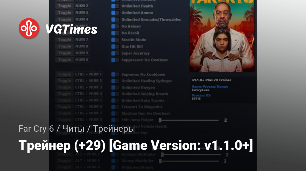 • Far Cry 6 — Трейнер (+29) [Game Version: v1.1.0+]
