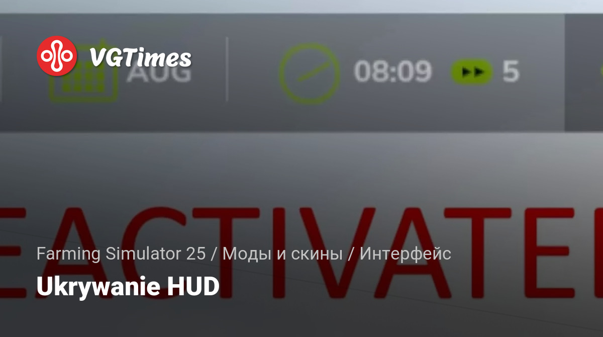 Ukrywanie HUD — to prosty mod, który pozwala na usunięcie wszystkich elementów interfejsu (HUD). Interfejs można włączać i wyłączać, używając kombinacji klawiszy lewy Alt + H.