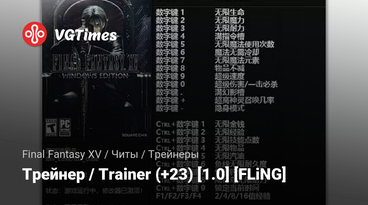 • Final Fantasy XV — Трейнер / Trainer (+23) [1.0] [FLiNG]
