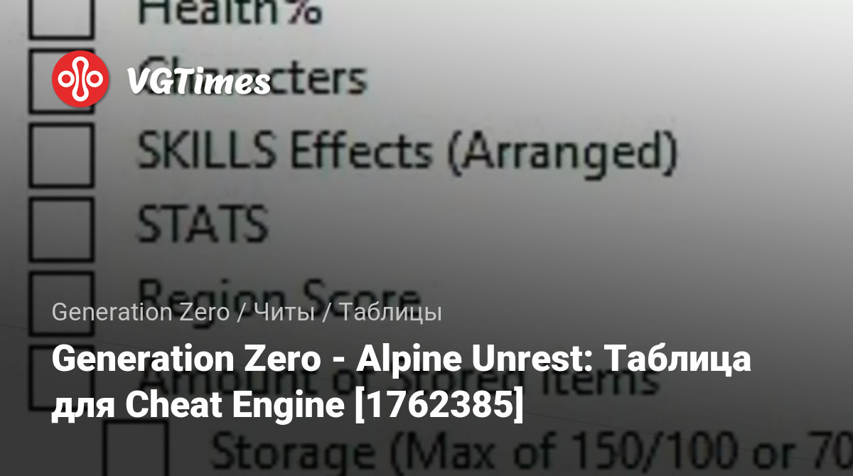 • Generation Zero — Generation Zero - Alpine Unrest: Таблица для Cheat Engine [1762385]