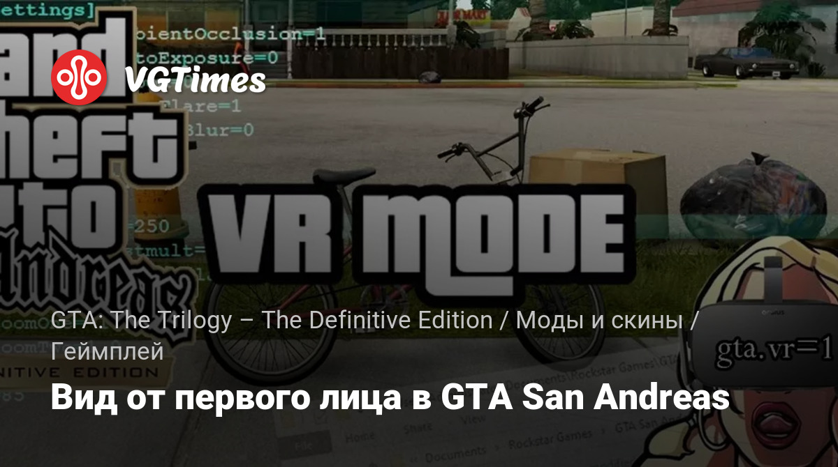 Переменная представления Unreal Engine «Режим VR» доступна в версии San Andreas Definitive Edition для ПК путем добавления строки gta.vr = 1 в файл CustomSettings.ini, который находится в C: / Users / Administrator / Documents / Rockstar Games / GTA San Andreas Definitive Edition / Config / WindowsNoEditor. Таким образом вы получите камеру с видом от первого лица (эта камера не работает во время прицеливания, только во время пробуждения пешком).