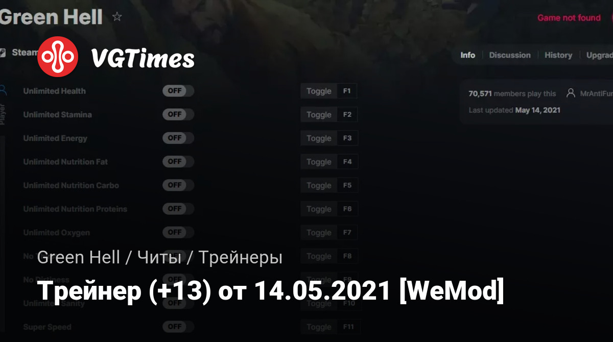 • Green Hell — Трейнер (+13) от 14.05.2021 [WeMod]