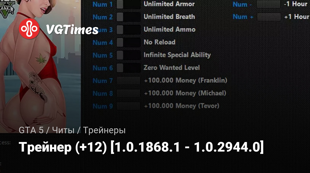 • GTA 5 — Трейнер (+12) [1.0.1868.1 - 1.0.2944.0]