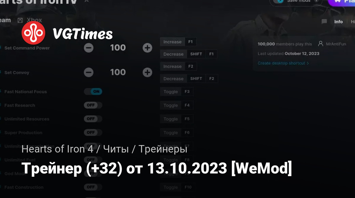 Трейнер (+32) от 13.10.2023 [WeMod]