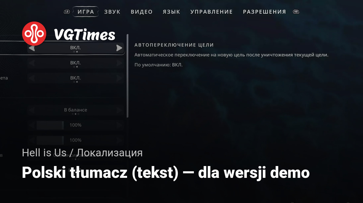 В Hell is Us официально заявлена локализация на русский язык. Более того, все необходимые файлы уже есть в файлах демоверсии, однако выбрать перевод на русский нельзя. Данный файл исправляет эту проблему и добавляет перевод всего текста.