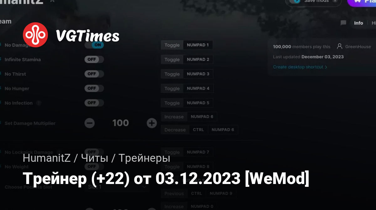 Трейнер (+22) от 03.12.2023 [WeMod]
